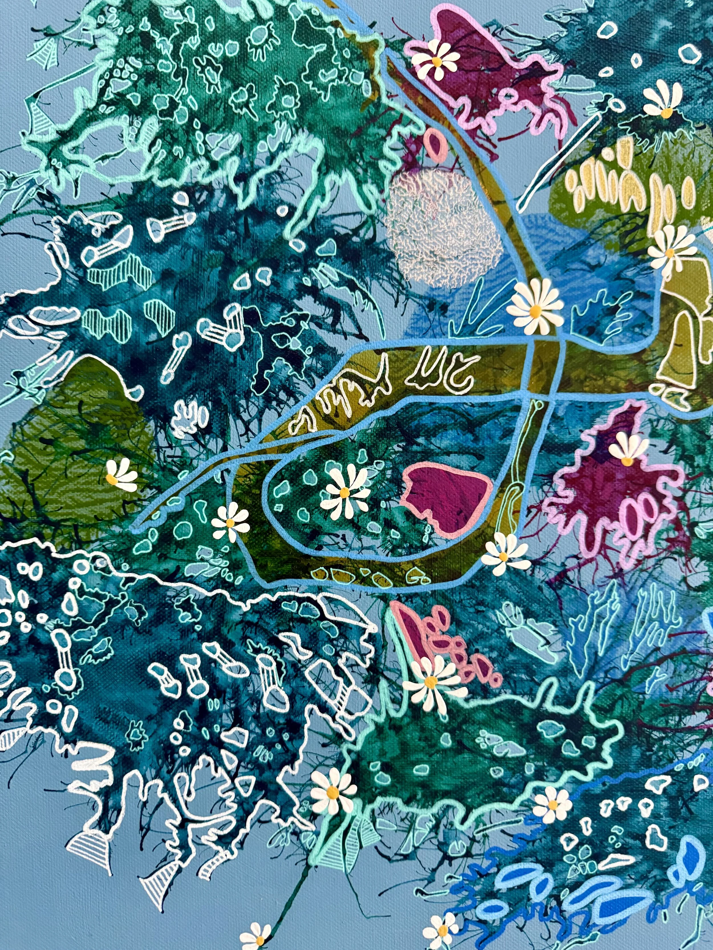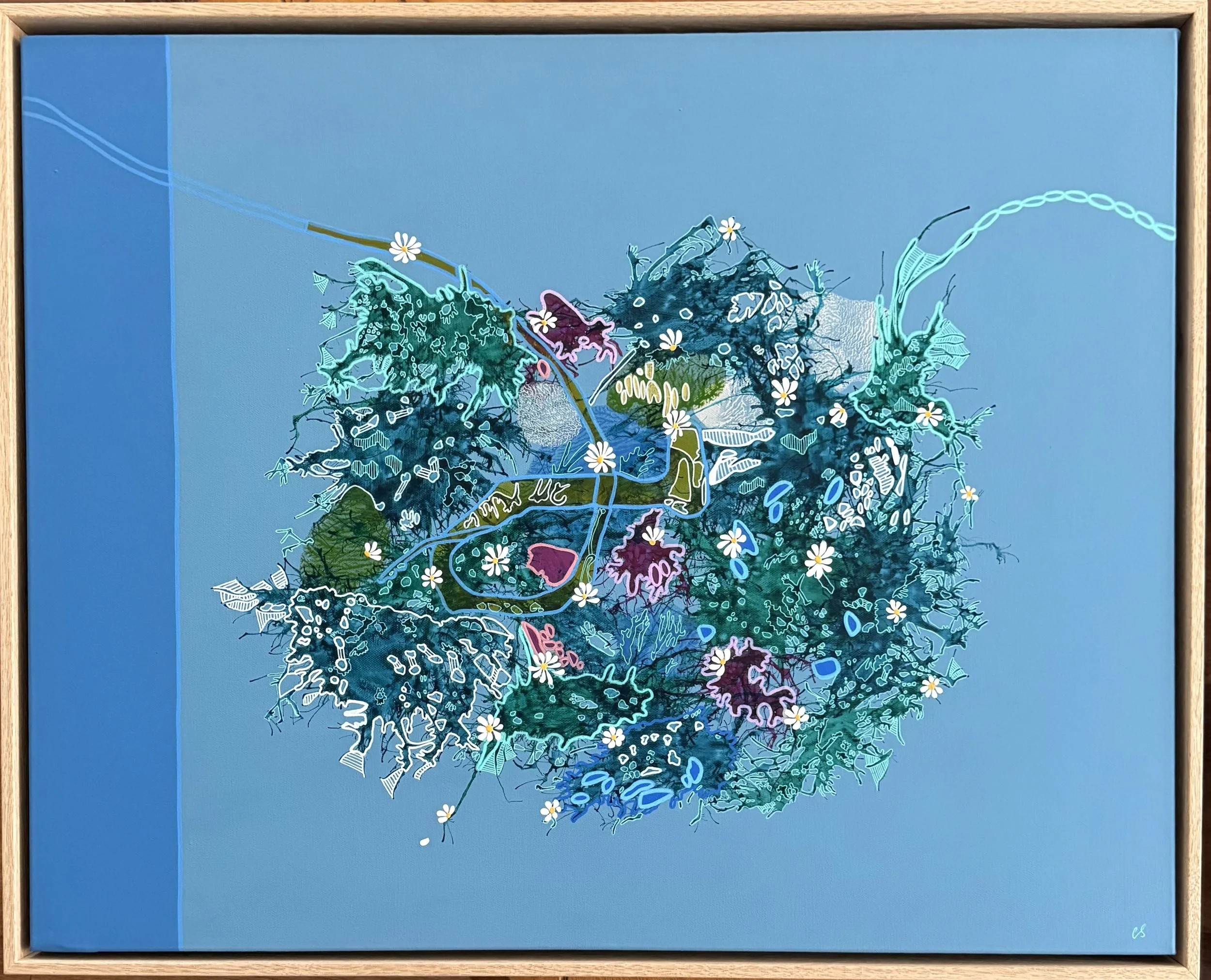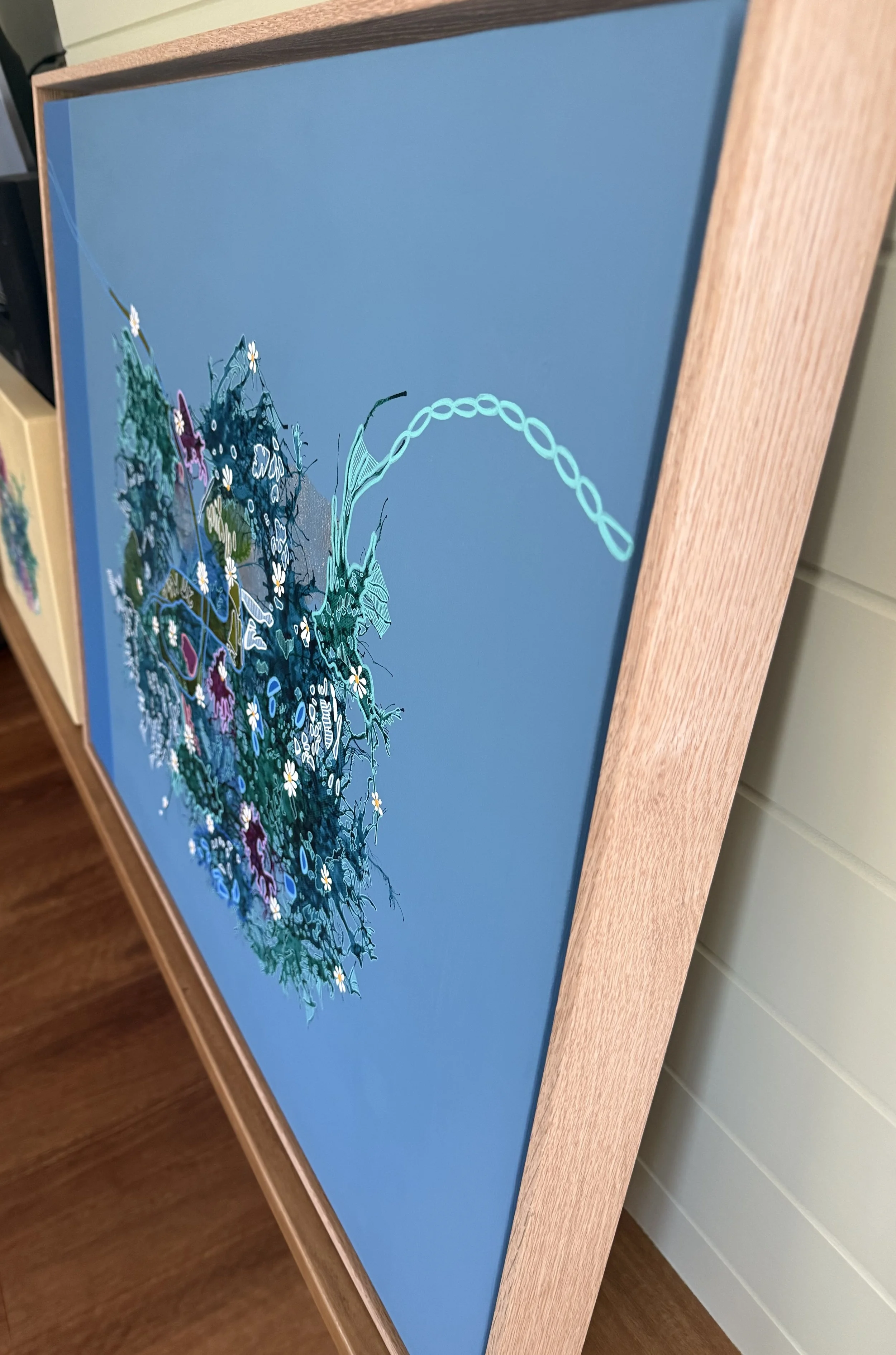 79.5cm x 64.5cm, Ink and acrylic on canvas, framed (oak).