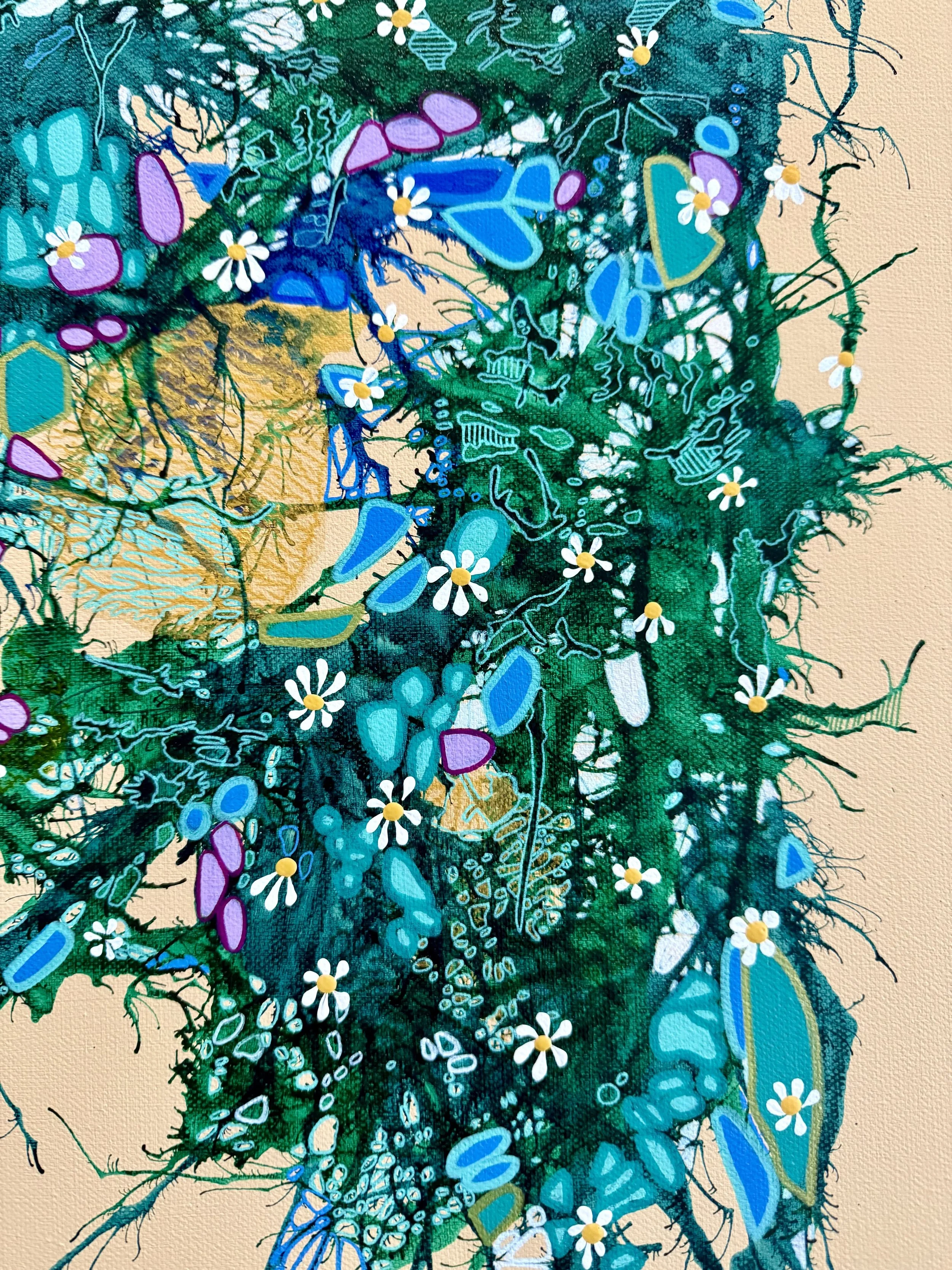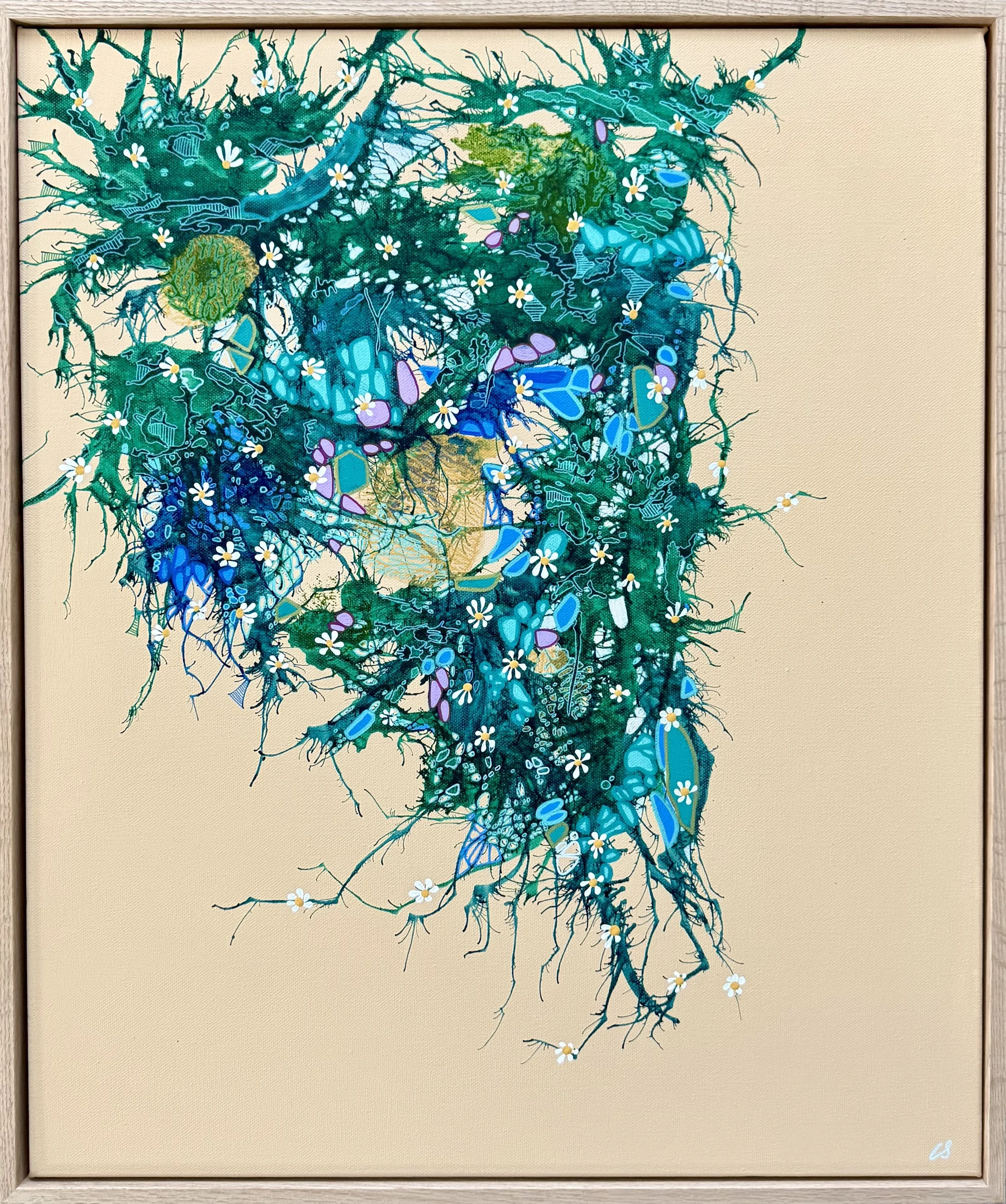 53.5cm x 63.5cm, Ink and acrylic on canvas, framed (oak).