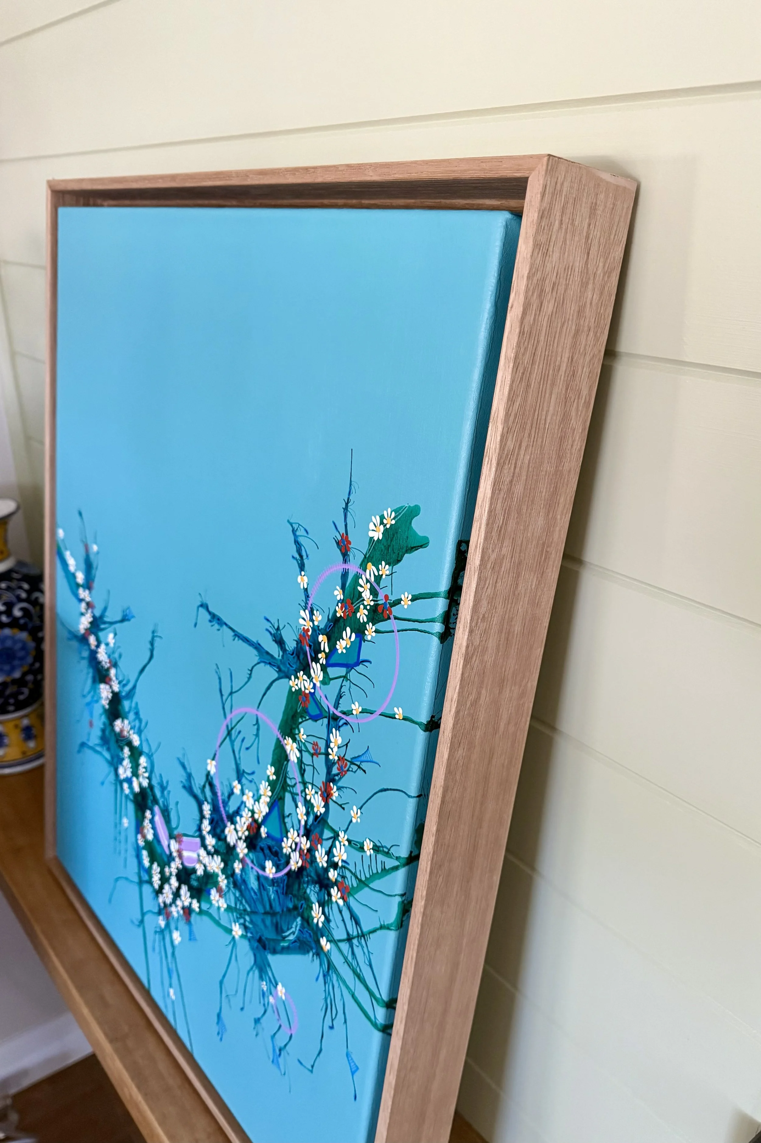 53.5cm x 63.5cm, Ink and acrylic on canvas, framed (oak).