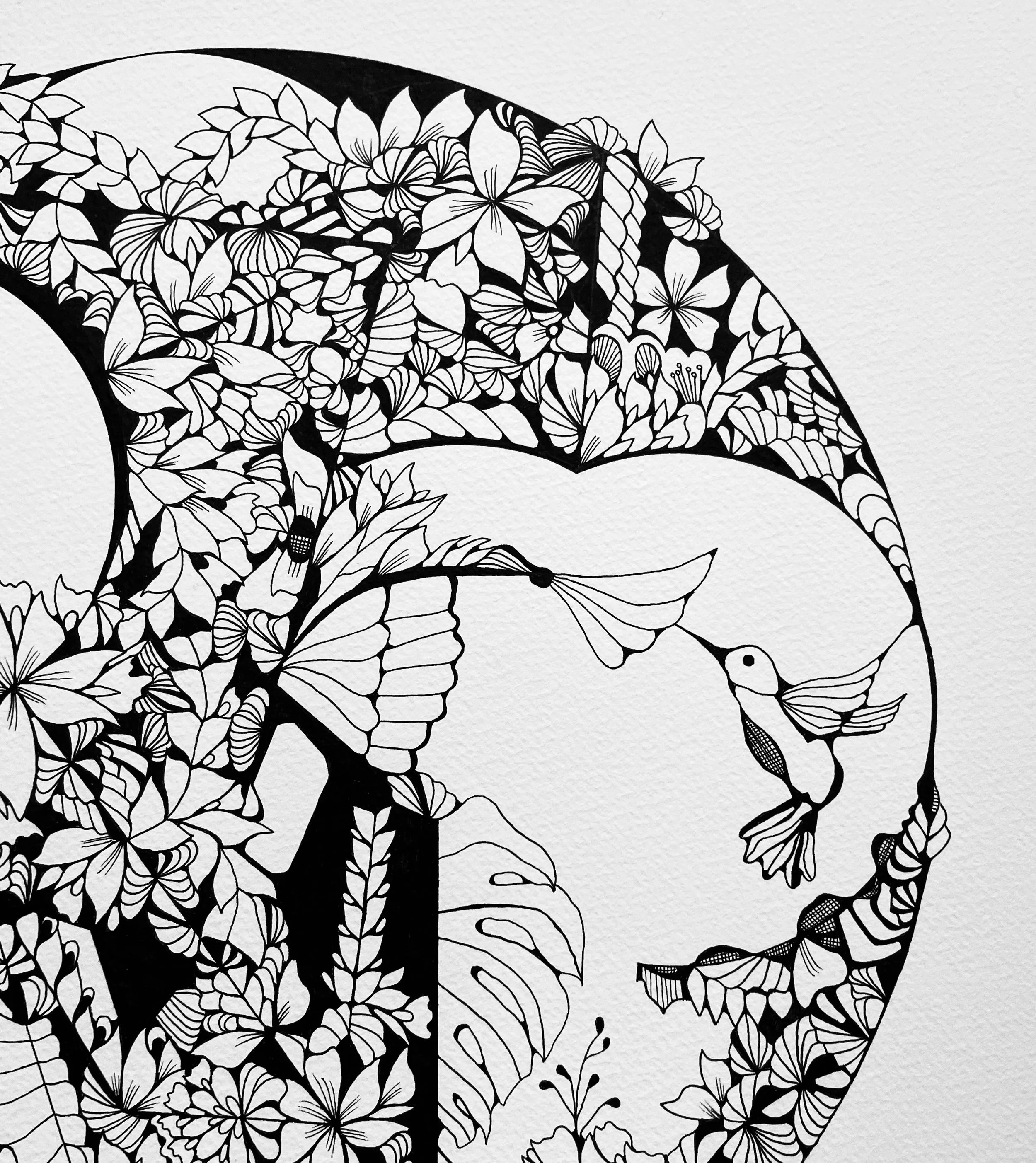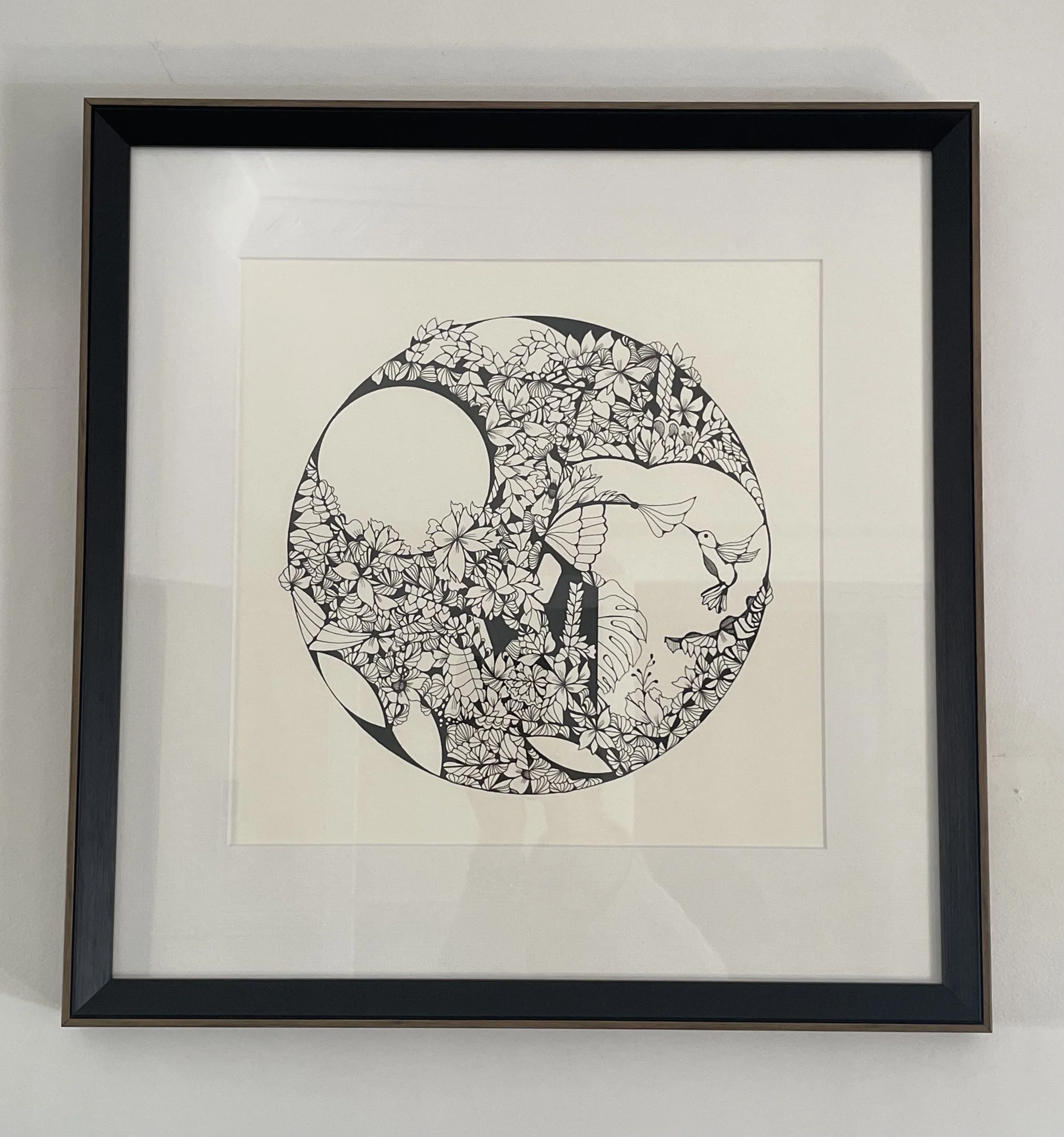 52cm x 52cm, archival ink on paper, professionally framed behind glass.