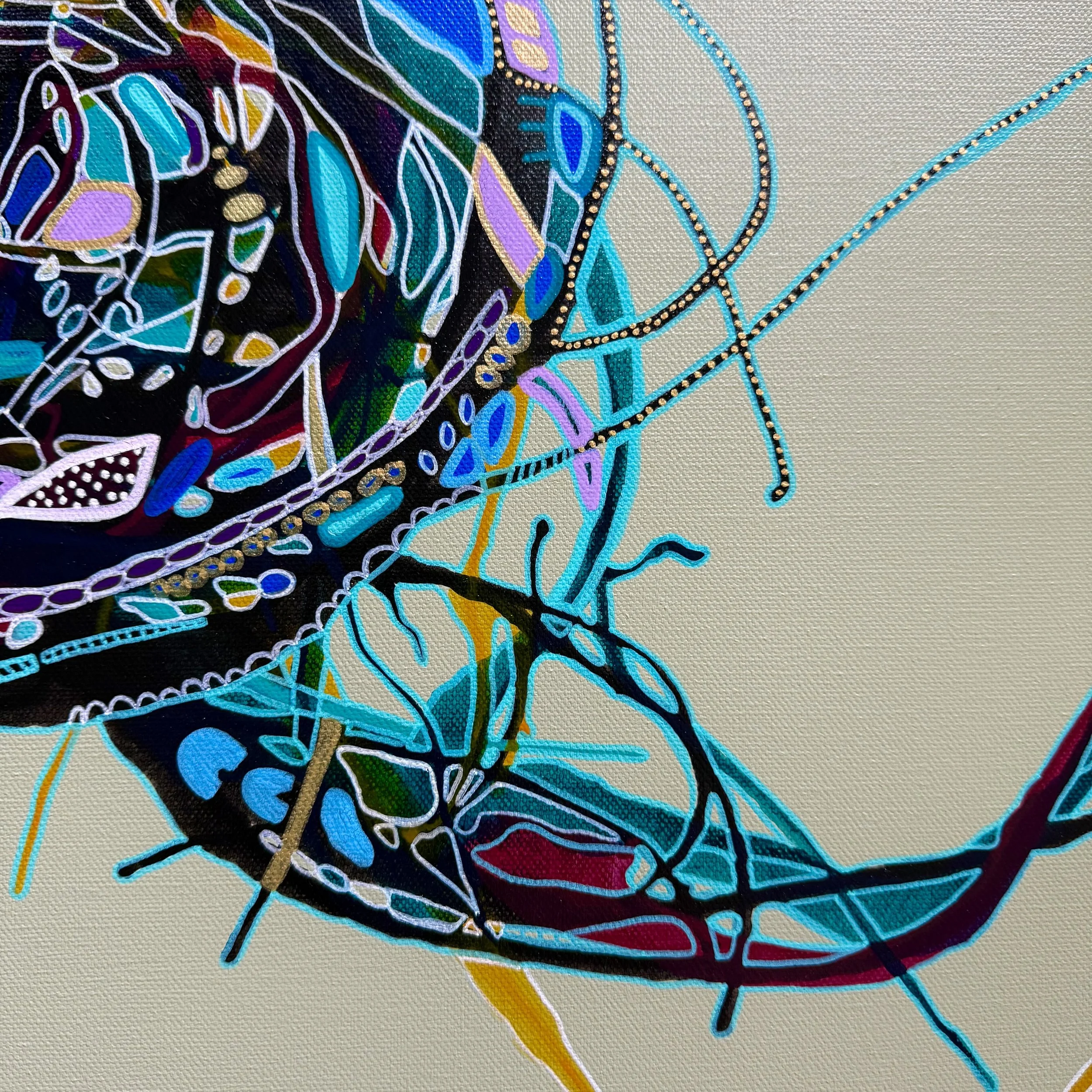50cm x 50cm, Acrylic ink and acrylic paint on canvas, floating frame (oak)
