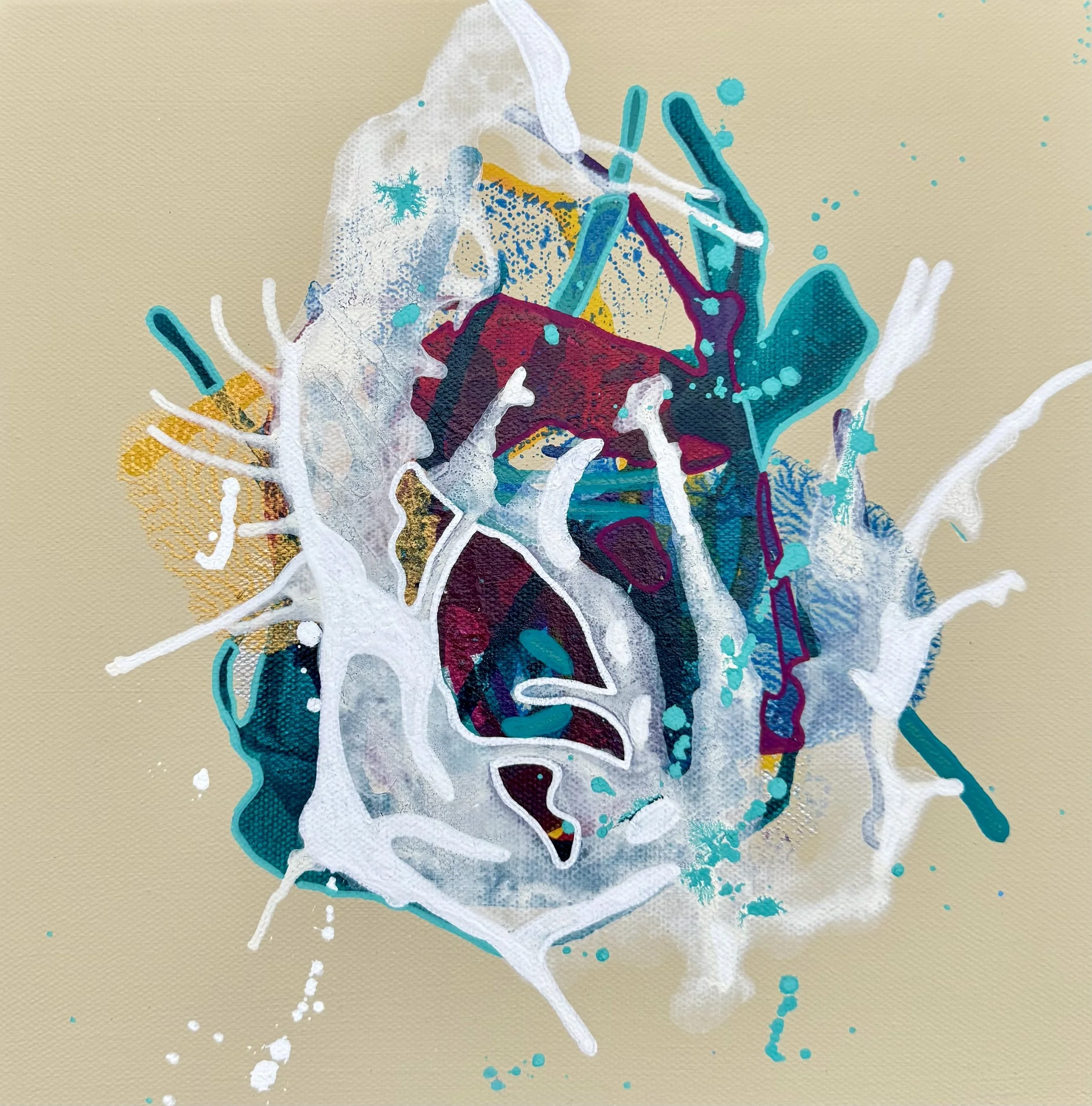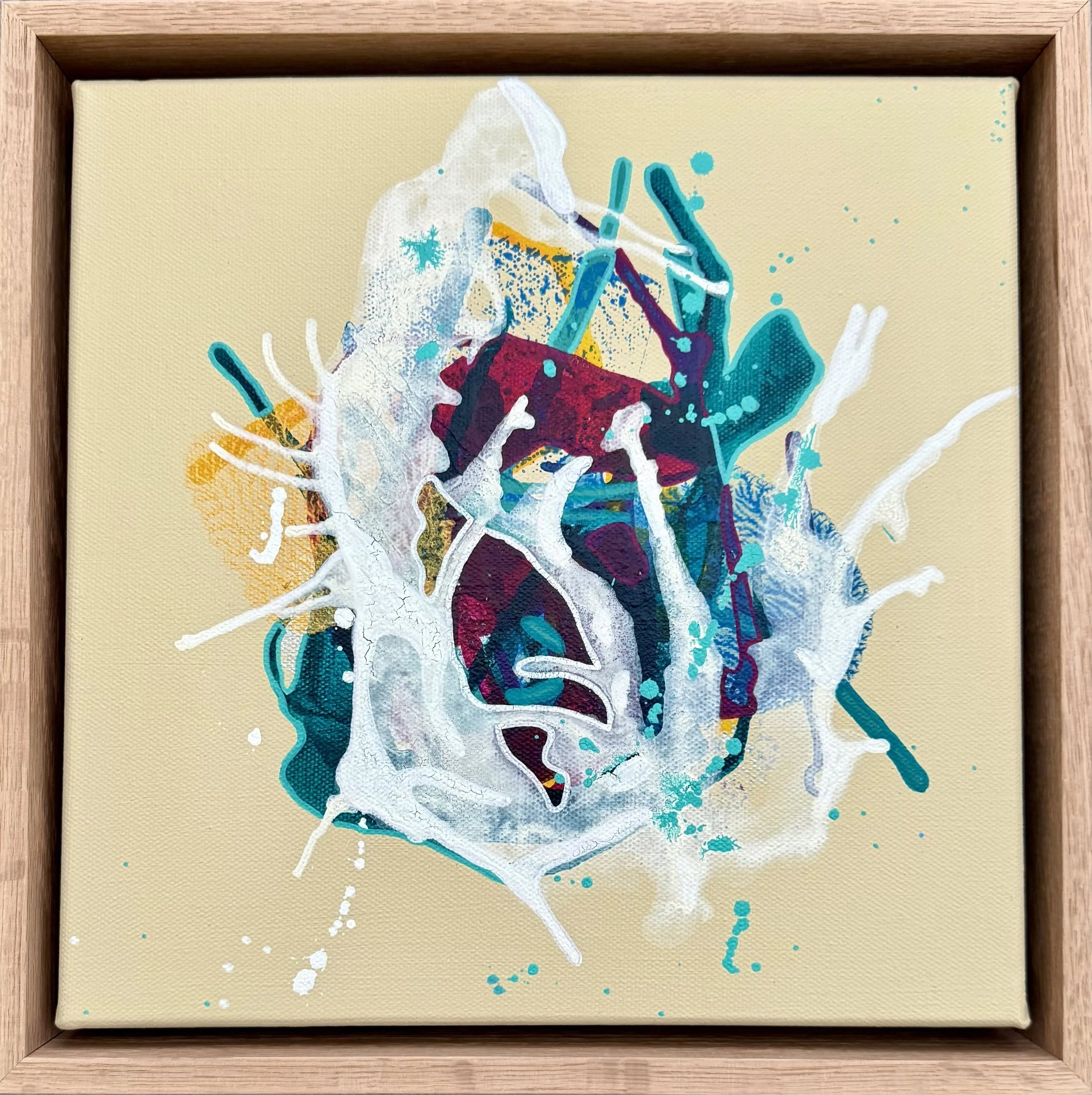 29cm x 29cm, Acrylic ink and acrylic paint on canvas, floating frame - oak.
