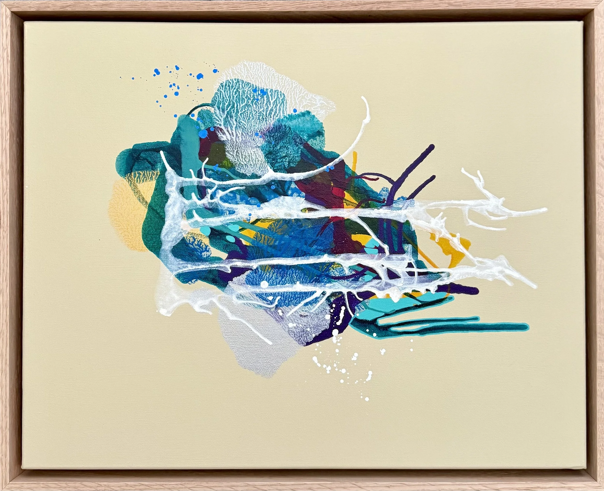 54.5cm x 44.5cm, Acrylic ink and acrylic paint on canvas, floating frame - oak.